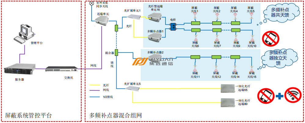 屏蔽控制精度:采用运营商级无源室内分布系统,屏蔽区域周界控制精准,不会影响周边通信。
