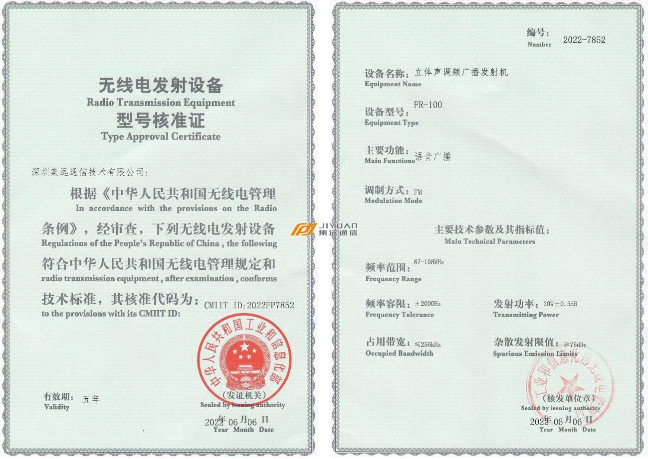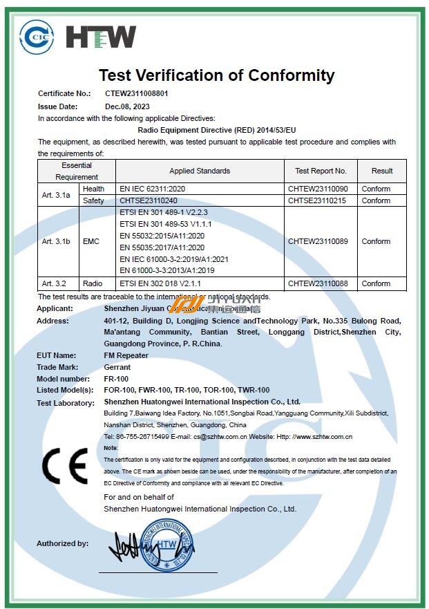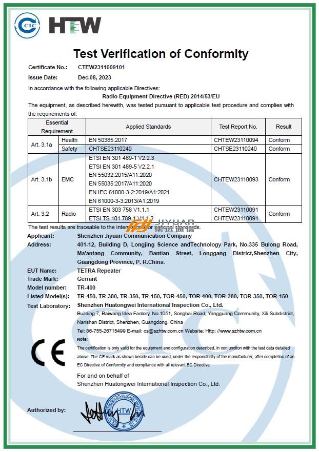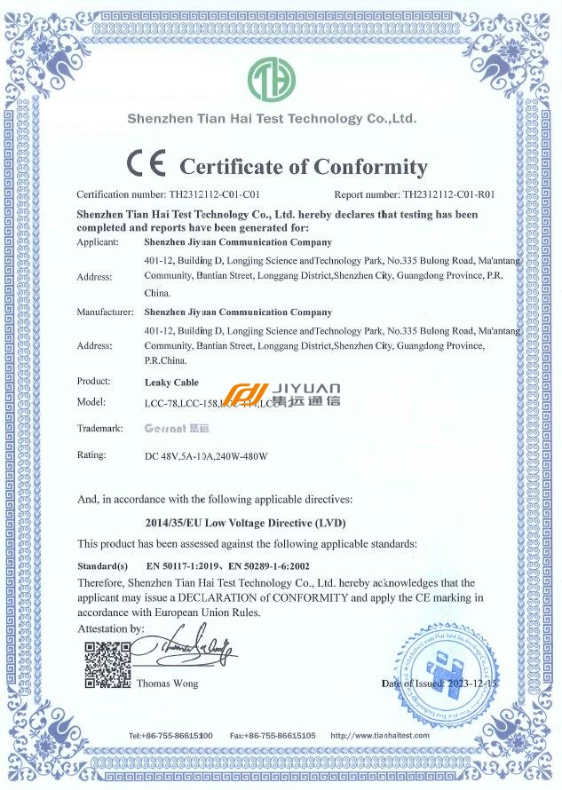 FM调频广播近远端机 CE证书 TETRA近远端机 CE证书 漏泄电缆 CE证书